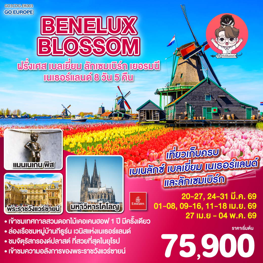 หน้าแรก / ทัวร์ทั้งหมด / BENELUX BLOSSOM ฝรั่งเศส เบลเยี่ยม ลักเซมเบิร์ก เยอรมนี เนเธอร์แลนด์