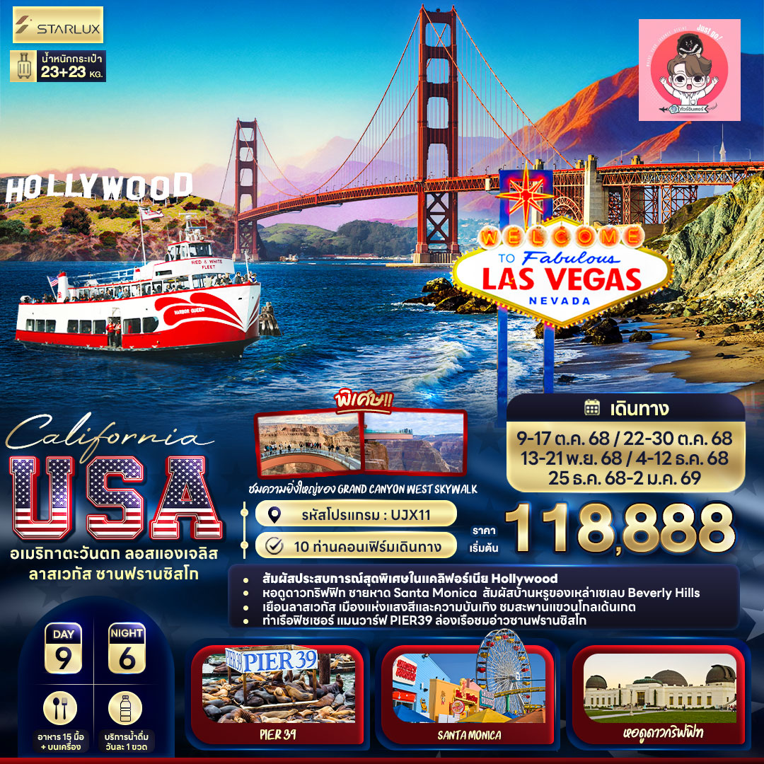 23.40 น. นำท่านเดินทางสู่ ท่าอากาศยานนานาชาติลอสแอนเจลิส ประเทศสหรัฐอเมริกา โดยสายการบิน STARLUX Airlines (JX) เที่ยวบินที่ JX002 (ค่าทัวร์รวมบริการอาหารบนเครื่องบิน)