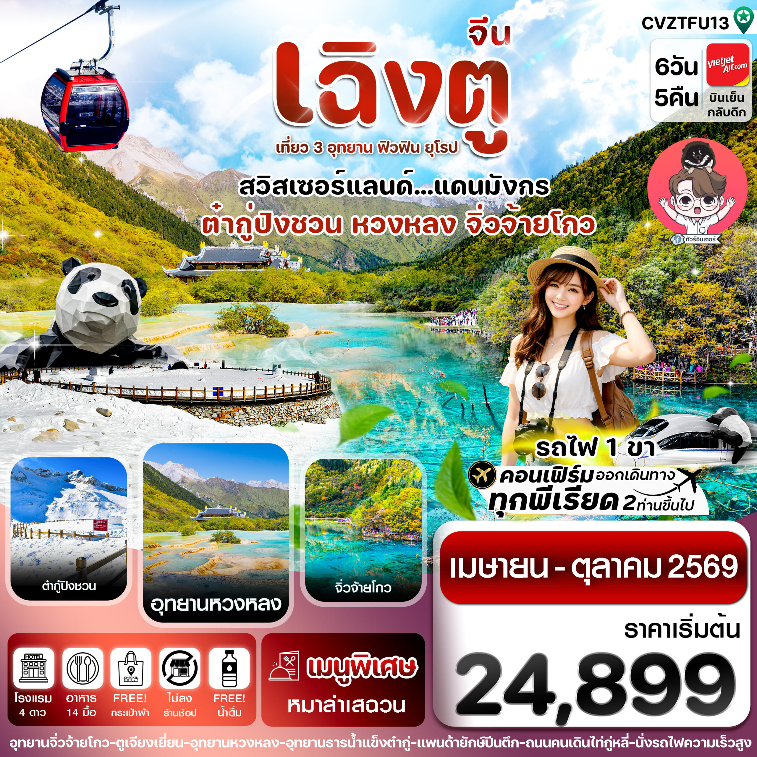 17.55 น. นำท่านเหินฟ้าสู่ เมืองเฉิงตู โดยเที่ยวบินที่ VZ3680 ไม่รวมบริการอาหารบนเครื่อง