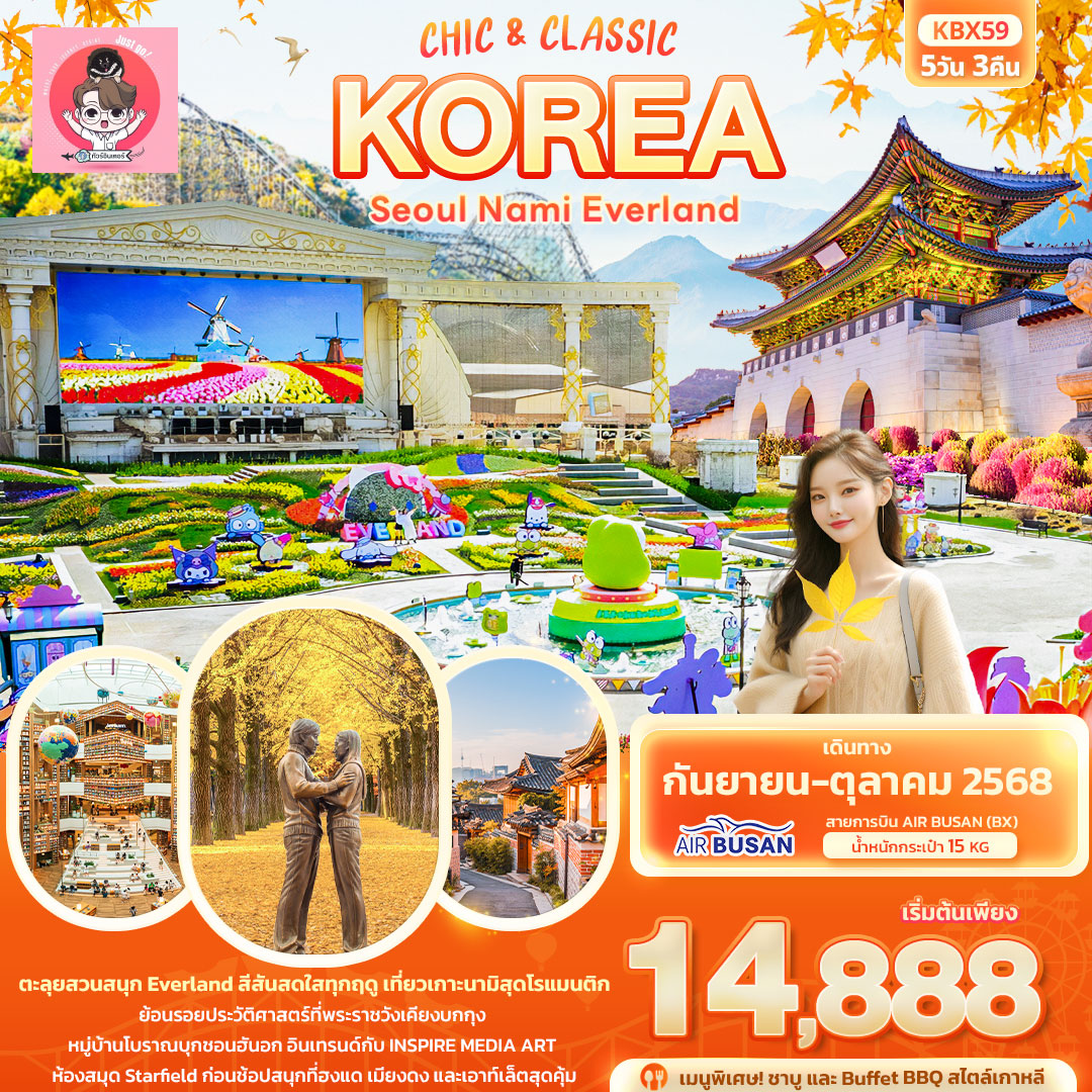 หน้าแรก / ทัวร์ทั้งหมด / Chic & Classic KOREA SEOUL NAMI EVERLAND 5วัน 3คืน