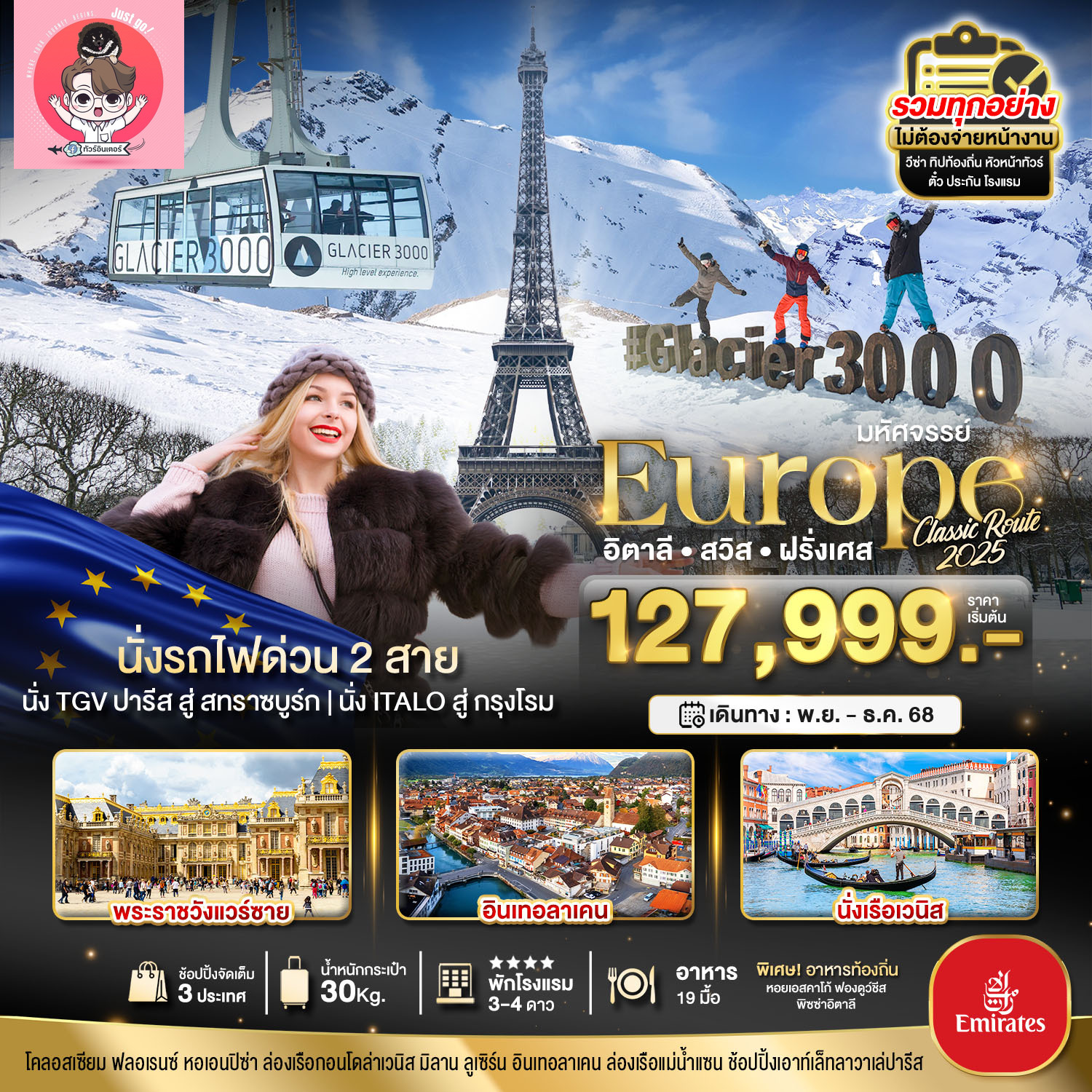 หน้าแรก / ทัวร์ทั้งหมด / มหัศจรรย์ Europe อิตาลี สวิส ฝรั่งเศส