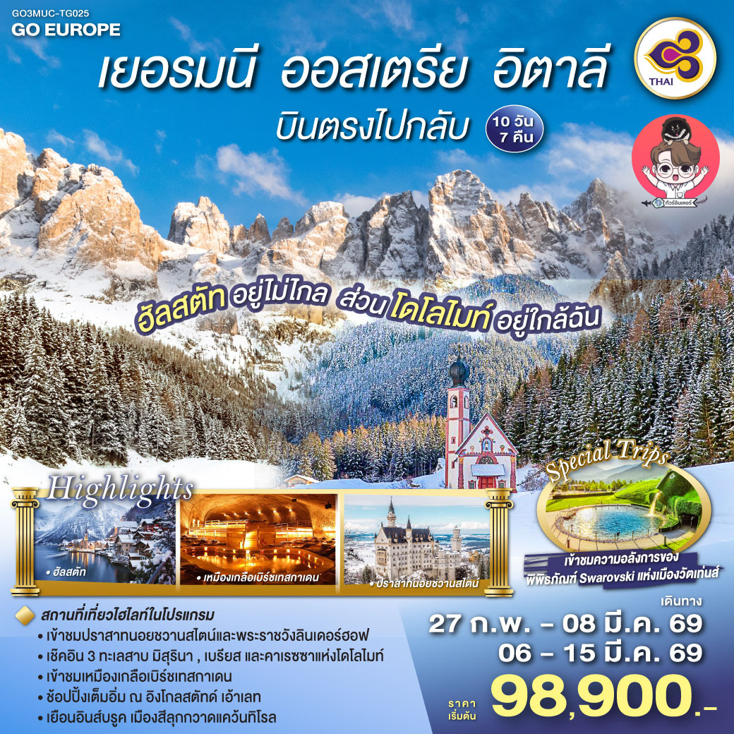 หน้าแรก / ทัวร์ทั้งหมด / เยอรมนี ออสเตรีย อิตาลี บินตรงไปกลับ