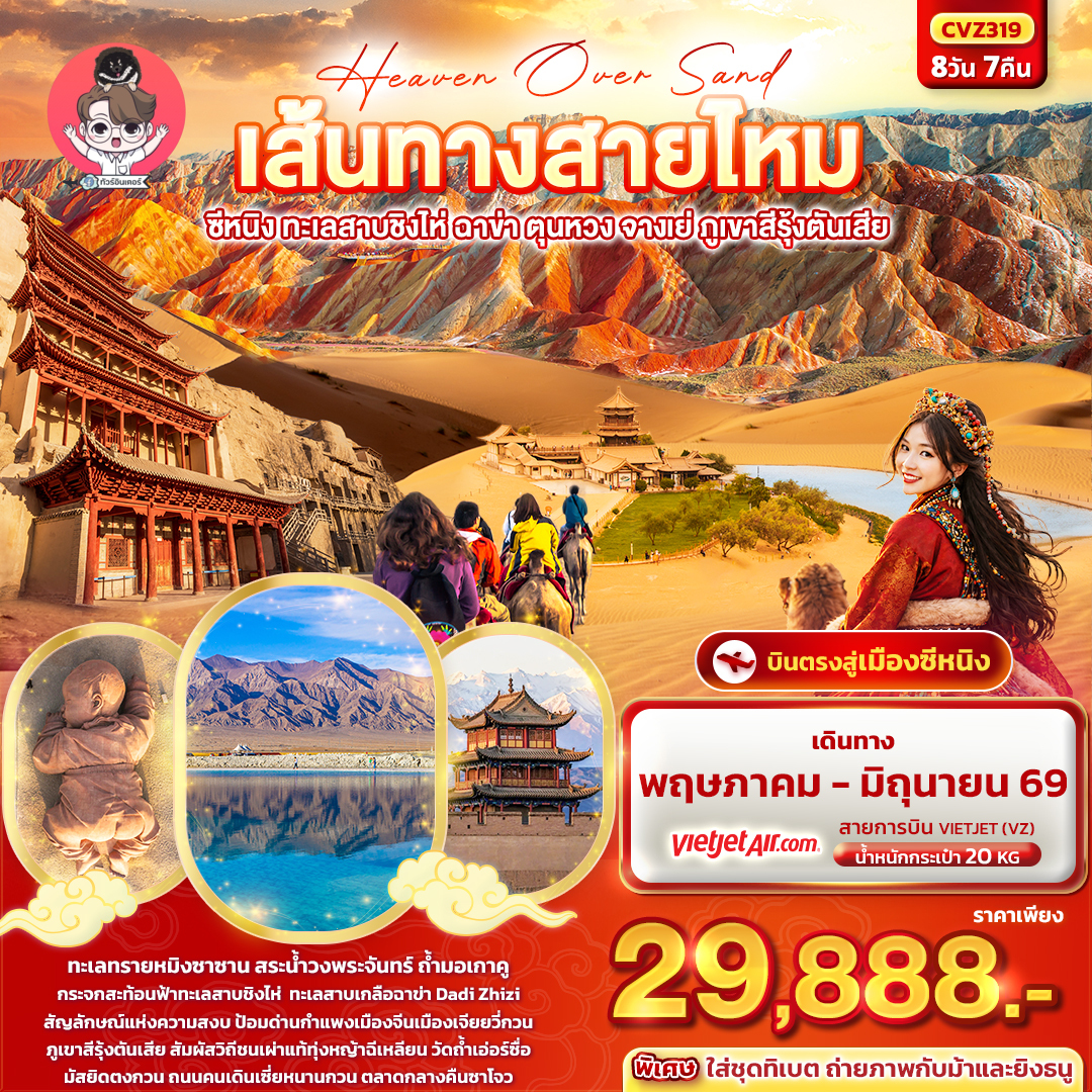 เมืองซีหนิง - ทะเลสาบชิงไห่(รวมค่าเข้าชม) - ร้านเครื่องเงิน - เมืองฉาข่า - ทะเลสาบเกลือฉาข่า (ทะเลสาบฟ้า NO.1)