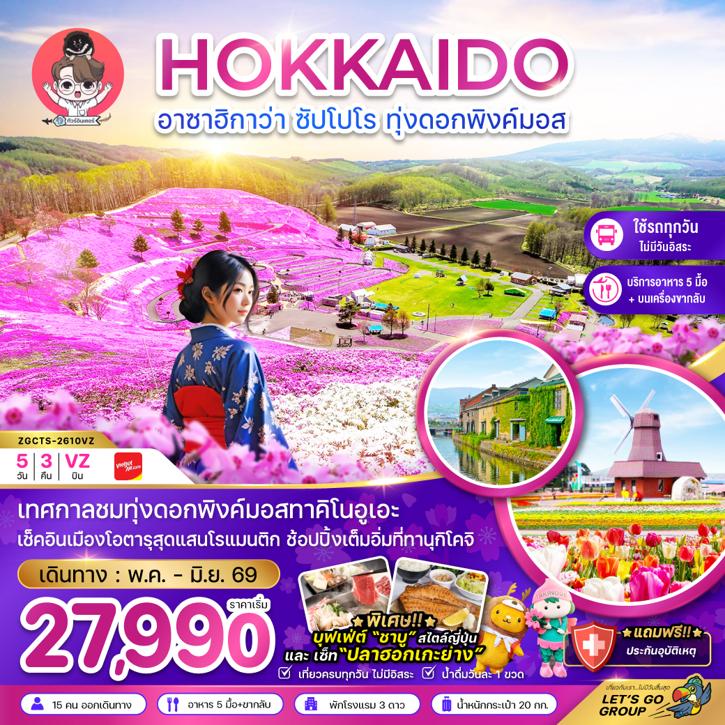 หน้าแรก / ทัวร์ทั้งหมด / HOKKAIDO อาซาฮิกาว่า ซัปโปโร ทุ่งดอกพิงค์มอส
