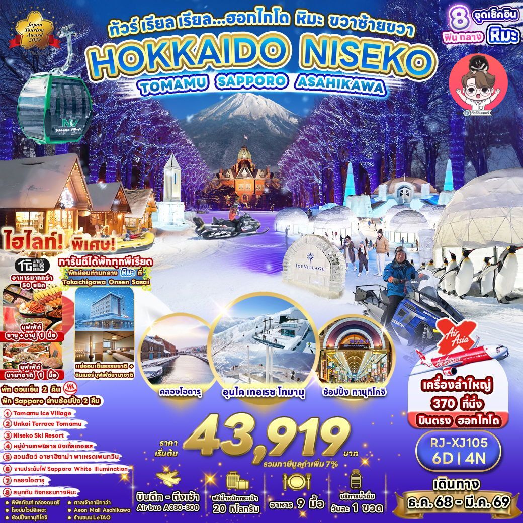 หน้าแรก / ทัวร์ทั้งหมด / HOKKAIDO NISEKO TOMAMU SAPPORO ASAHIKAWA