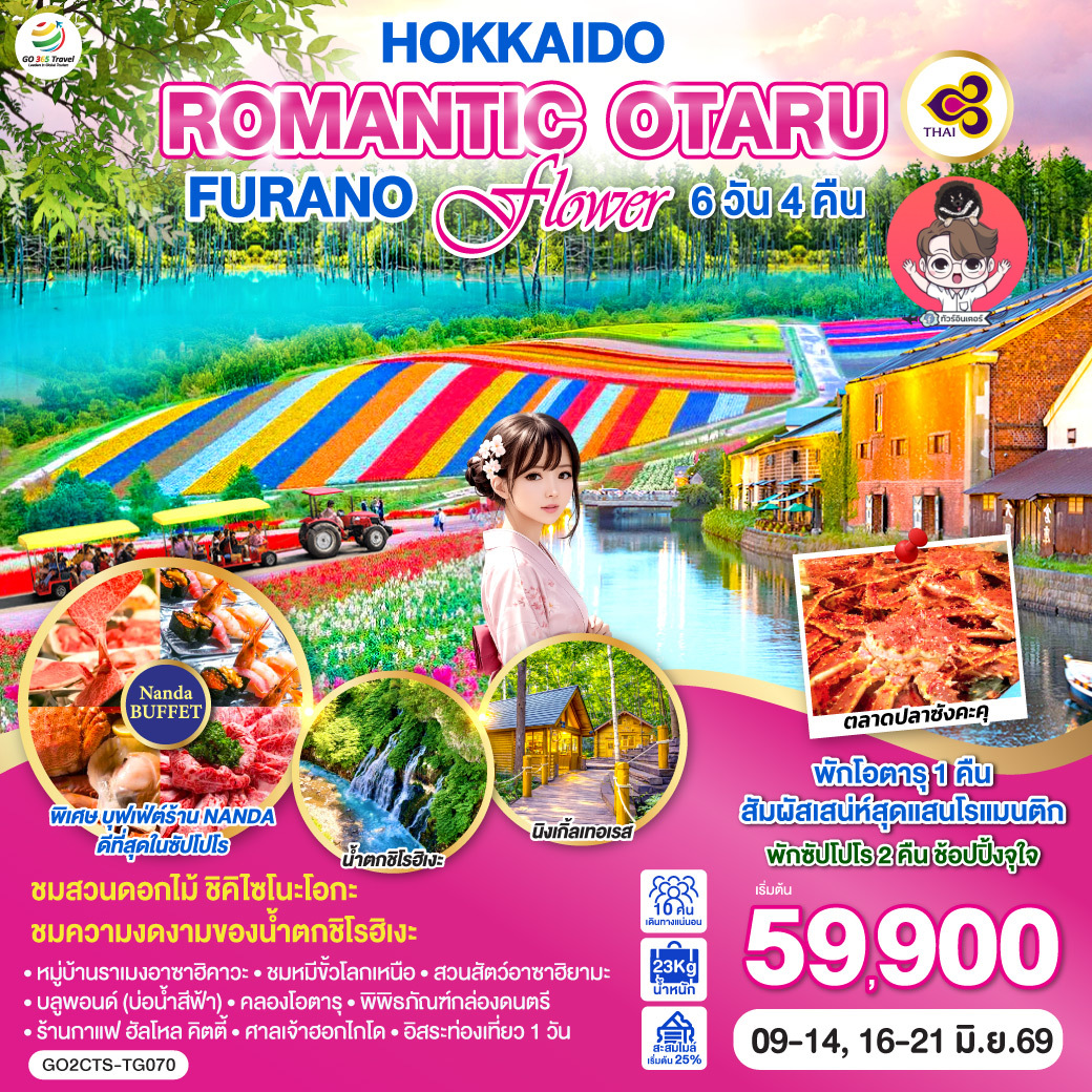 ตลาดปลาซังคะคุ - พิพิธภัณฑ์กล่องดนตรี – ร้านกาแฟ ฮัลโหล คิตตี้ - คลองโอตารุ ศาลเจ้าฮอกไกโด – เมืองซัปโปโร - ร้านDuty Free – พิเศษบุฟเฟ่ต์ร้าน NANDA ดีที่สุดในซัปโปโร
