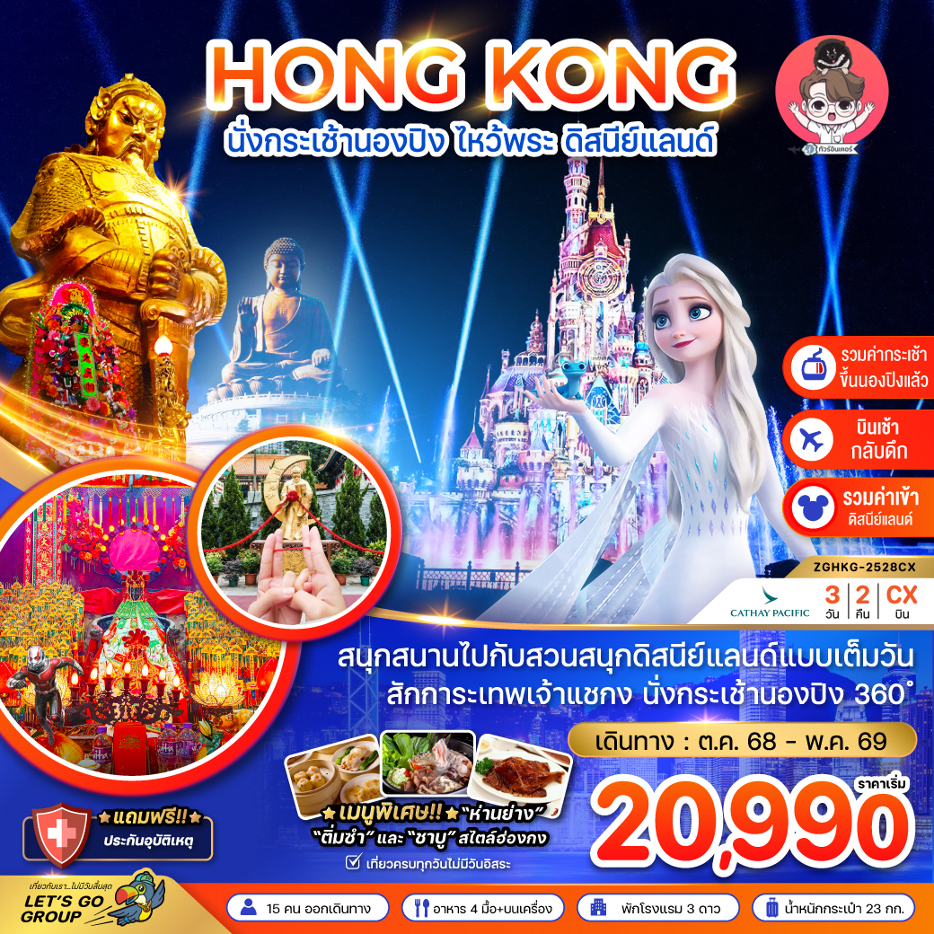หน้าแรก / ทัวร์ทั้งหมด / HONGKONG นั่งกระเช้านองปิง ไหว้พระ ดีสนีย์แลนด์