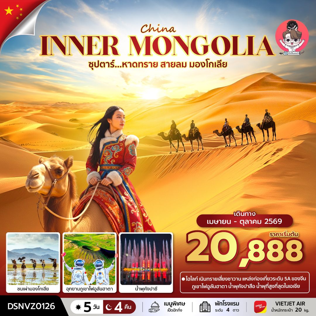 หน้าแรก / ทัวร์ทั้งหมด / INNER MONGOLIA ซุปตาร์ หาดทราย สายลม มองโกเลีย