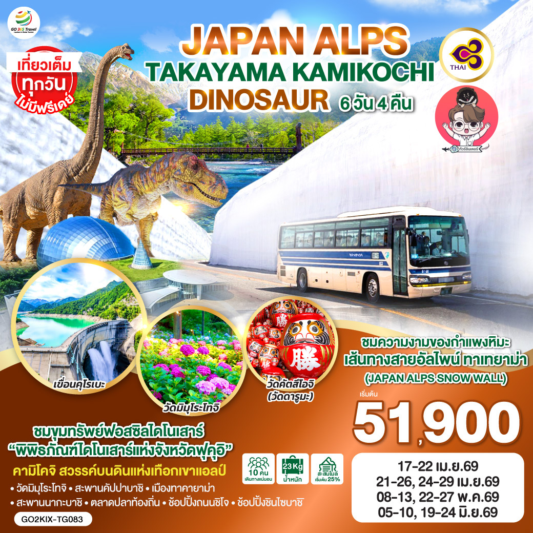 จังหวัดนากาโน่ - เส้นทางสายอัลไพน์ทาเทยาม่า – เขื่อนคุโรเบะ - กำแพงหิมะ – เมืองโทยามะ – จังหวัดคานาซาวะ