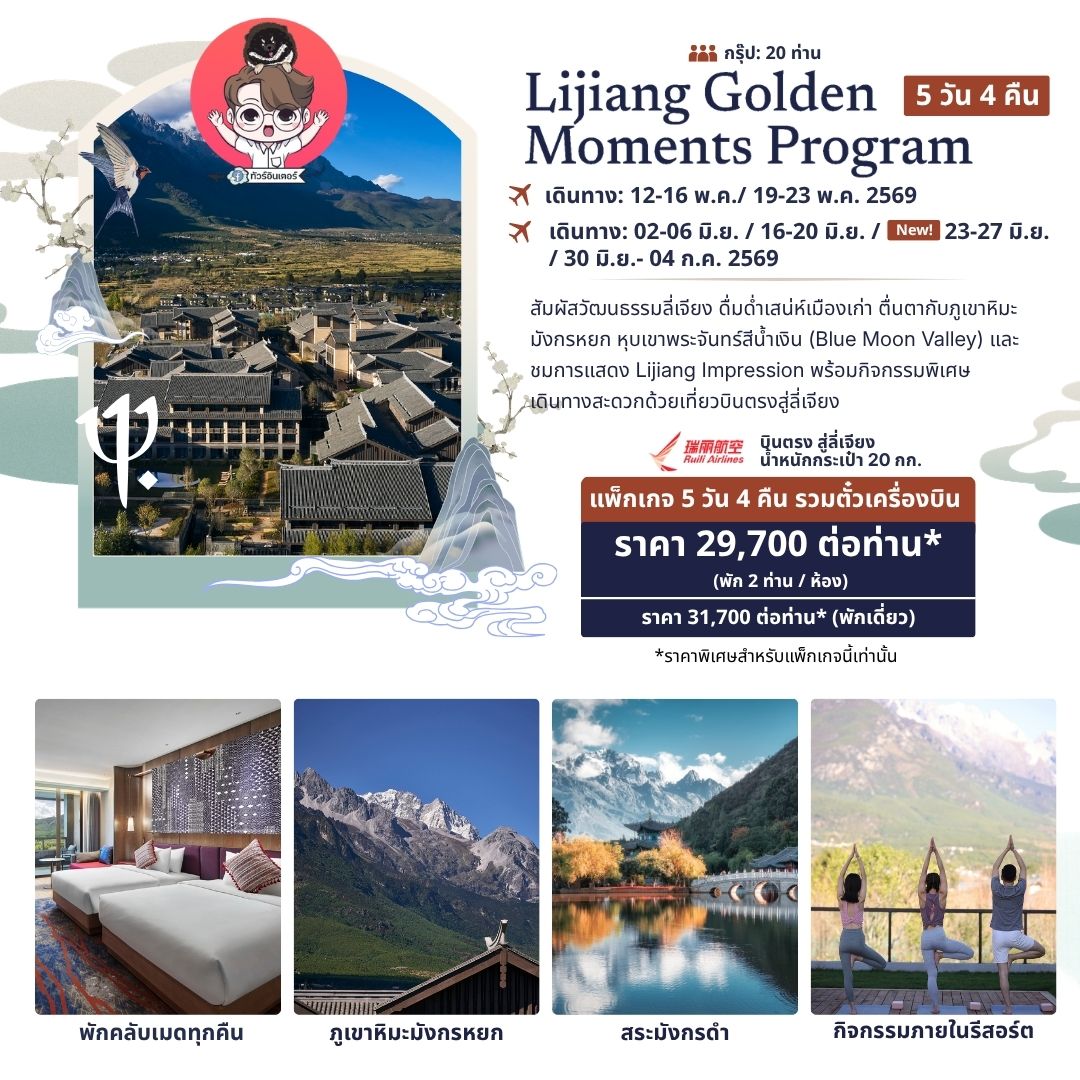 • ราคาเริ่มต้น 29,700 บาท/ท่าน
