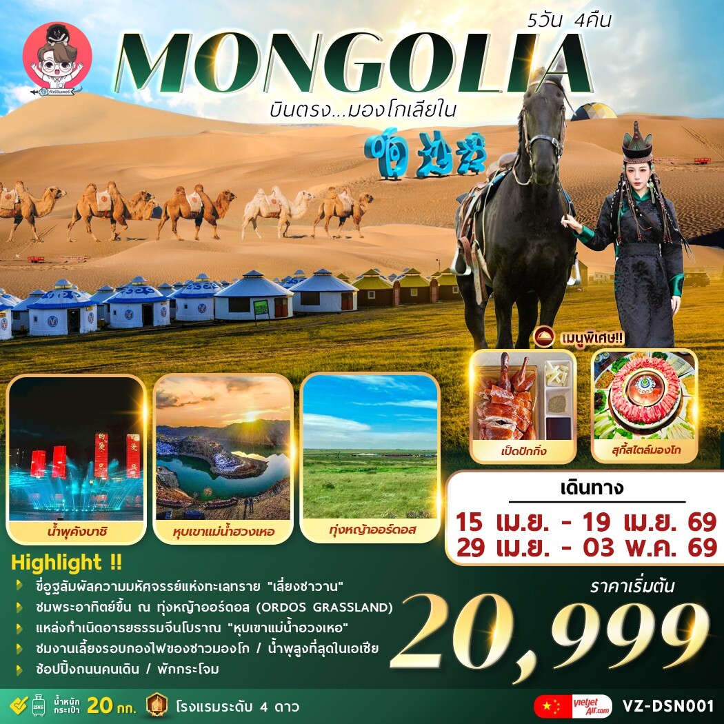 หน้าแรก / ทัวร์ทั้งหมด / MONGOLIA บินตรงมองโกเลียใน