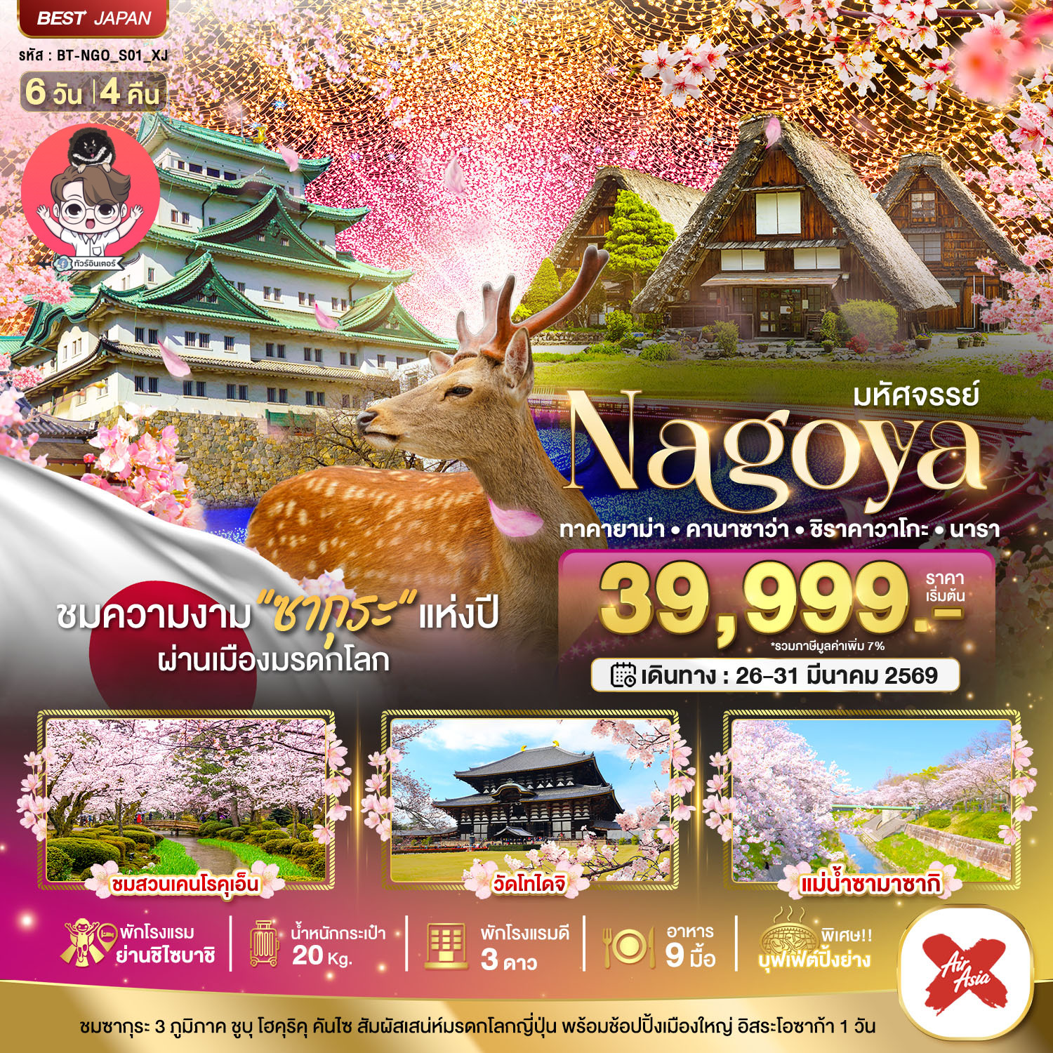 หน้าแรก / ทัวร์ทั้งหมด / มหัศจรรย์ NAGOYA ทาคายาม่า คานาซาว่า ชิราคาวาโกะ นารา