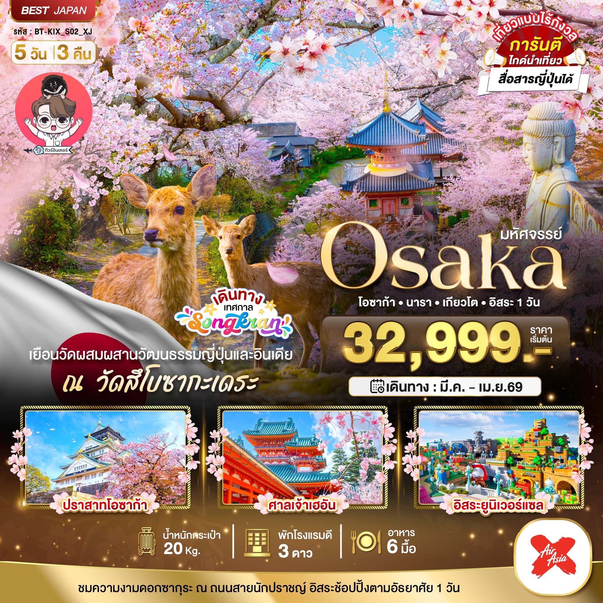 หน้าแรก / ทัวร์ทั้งหมด / มหัศจรรย์ OSAKA โอซาก้า นารา เกียวโต