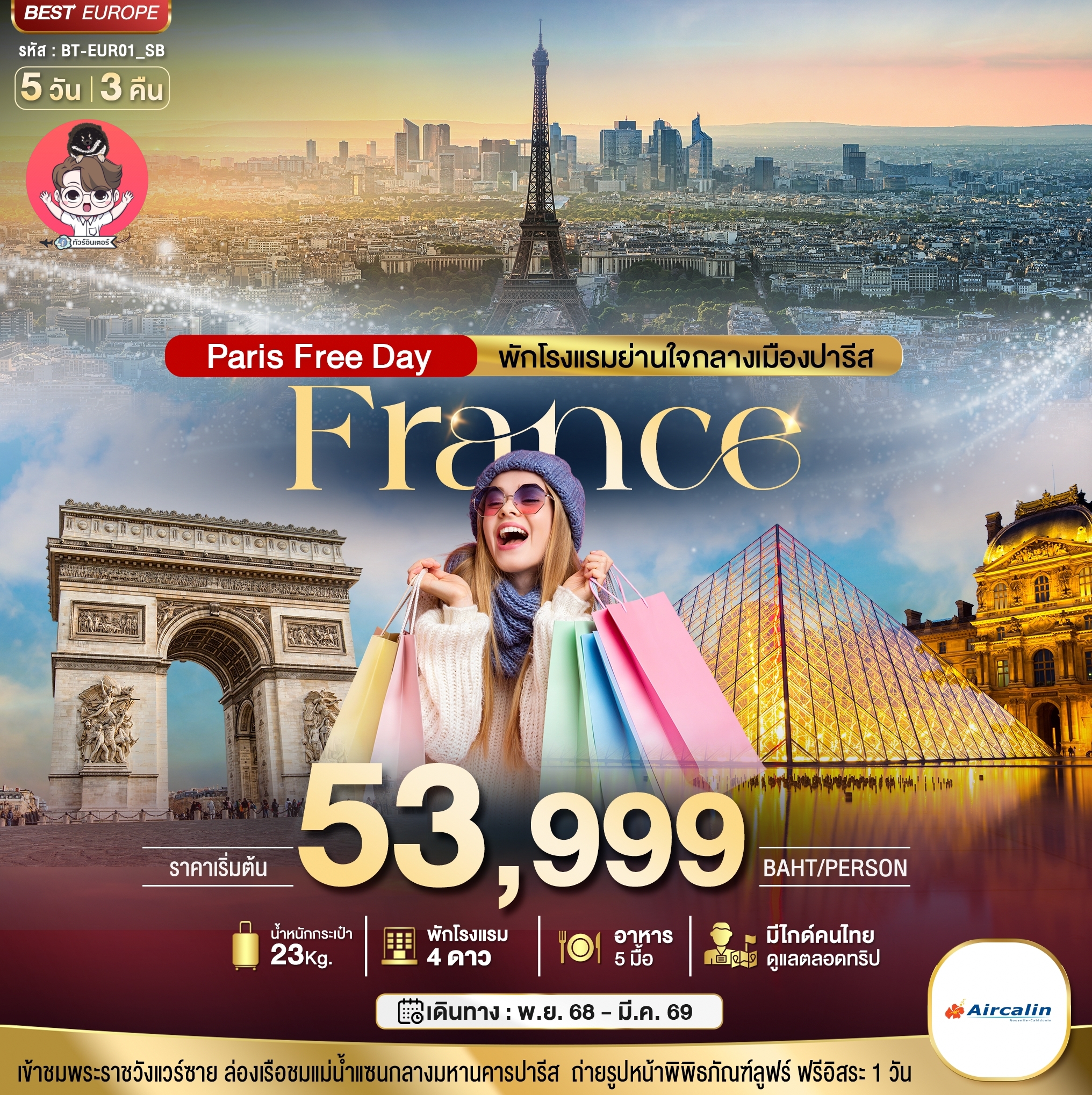 นำท่านเดินทางสู่ กรุงปารีส เมื่องหลวงสุดโรแมนติกของประเทศฝรั่งเศส หนึ่งในจุดหมายปลายทางในฝันของใครหลายๆ คนที่แม้กระทั่งชาวฝรั่งเศสที่อาศัยอยู่นอกเมืองหรือต่างจังหวัด หรือต่างแคว้นแดนไกล กล่าวว่าตราบใดที่มีลมหายใจ ก็ขอให้ได้เห็นมหานครปารีสสักครั้ง จากนั้นนำท่านเดินทางเข้าสู่ที่พัก
