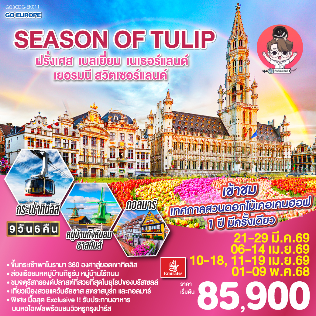 * กำหนดการเดินทาง 6-14 เม.ย.69 / 10-18 เม.ย.69 / 11-19 เม.ย.69 / 1-9 พ.ค.69 เที่ยวบินที่ EK 373 ปรับเวลาออกเดินทางเป็น 21.05 น. *