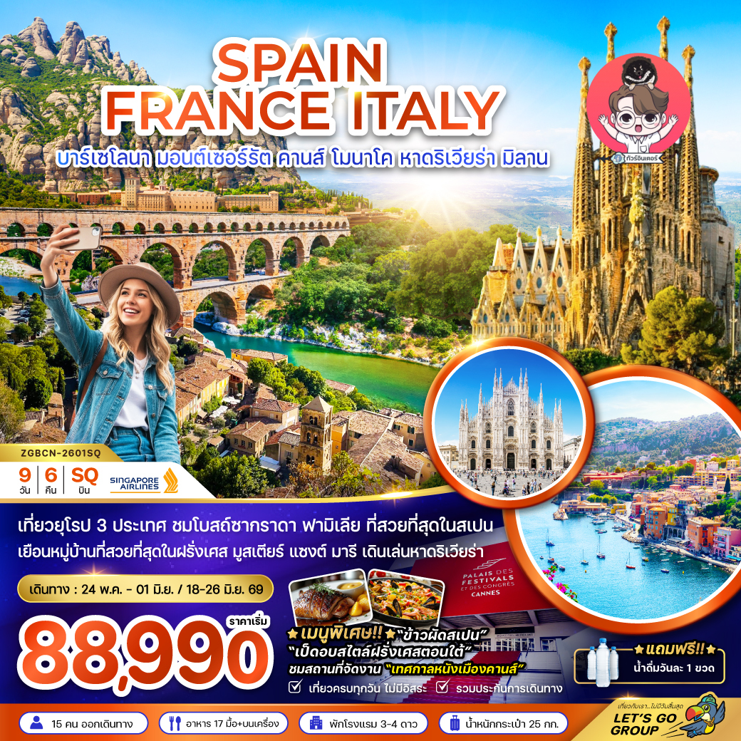 หน้าแรก / ทัวร์ทั้งหมด / SPAIN FRANCE ITALY