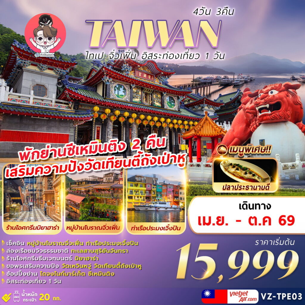 หน้าแรก / ทัวร์ทั้งหมด / TAIWAN ไทเป จิ่วเฟิ่น อิสระท่องเที่ยว1วัน