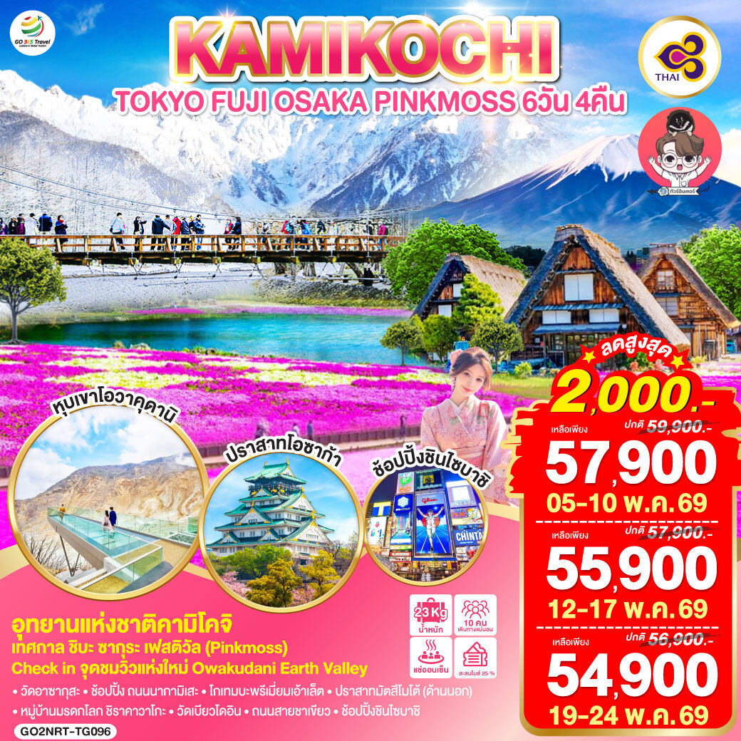 หน้าแรก / ทัวร์ทั้งหมด / TOKYO FUJI OSAKA KAMIKOCHI PINKMOSS
