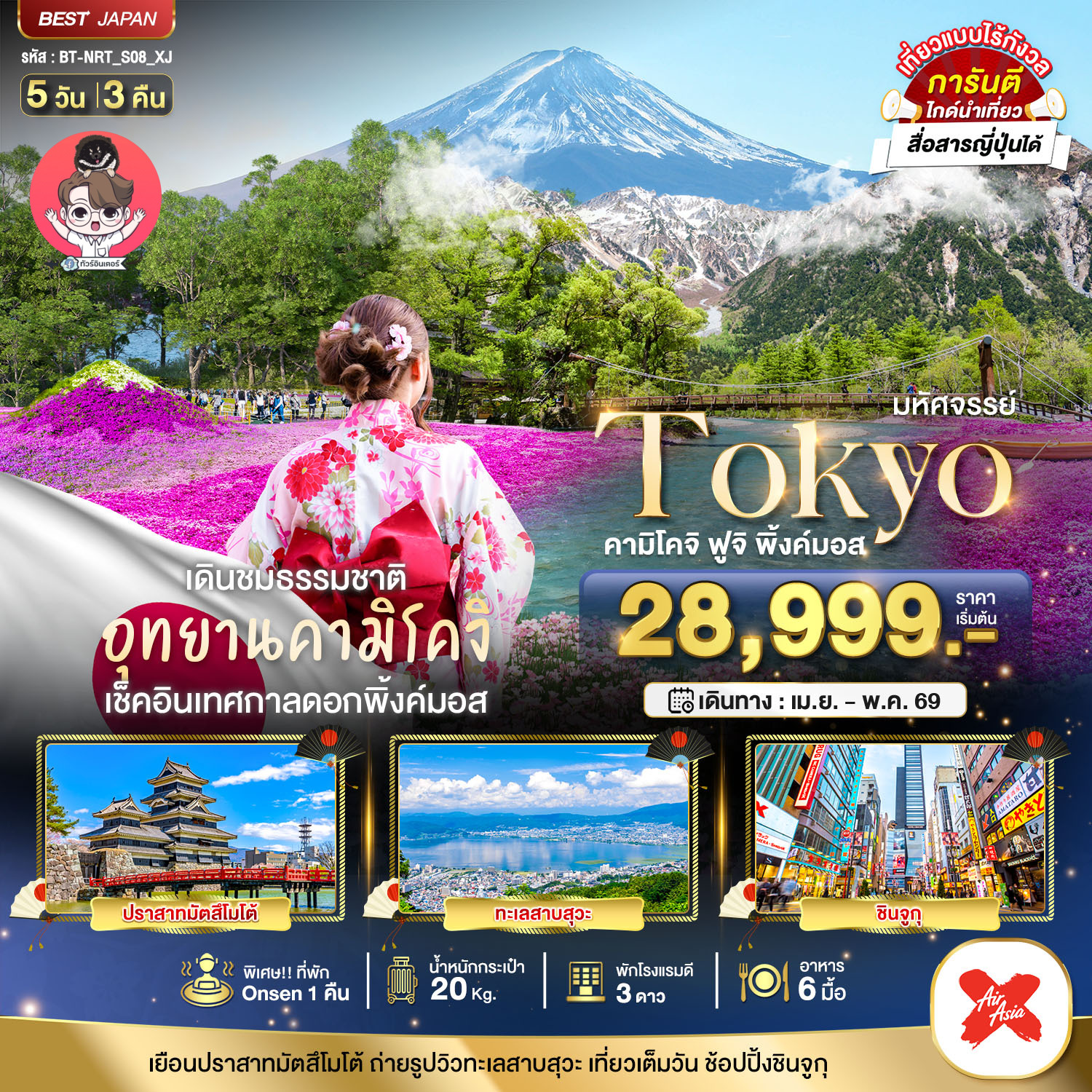 หน้าแรก / ทัวร์ทั้งหมด / มหัศจรรย์ TOKYO คามิโคจิ ฟูจิ พิ้งค์มอส