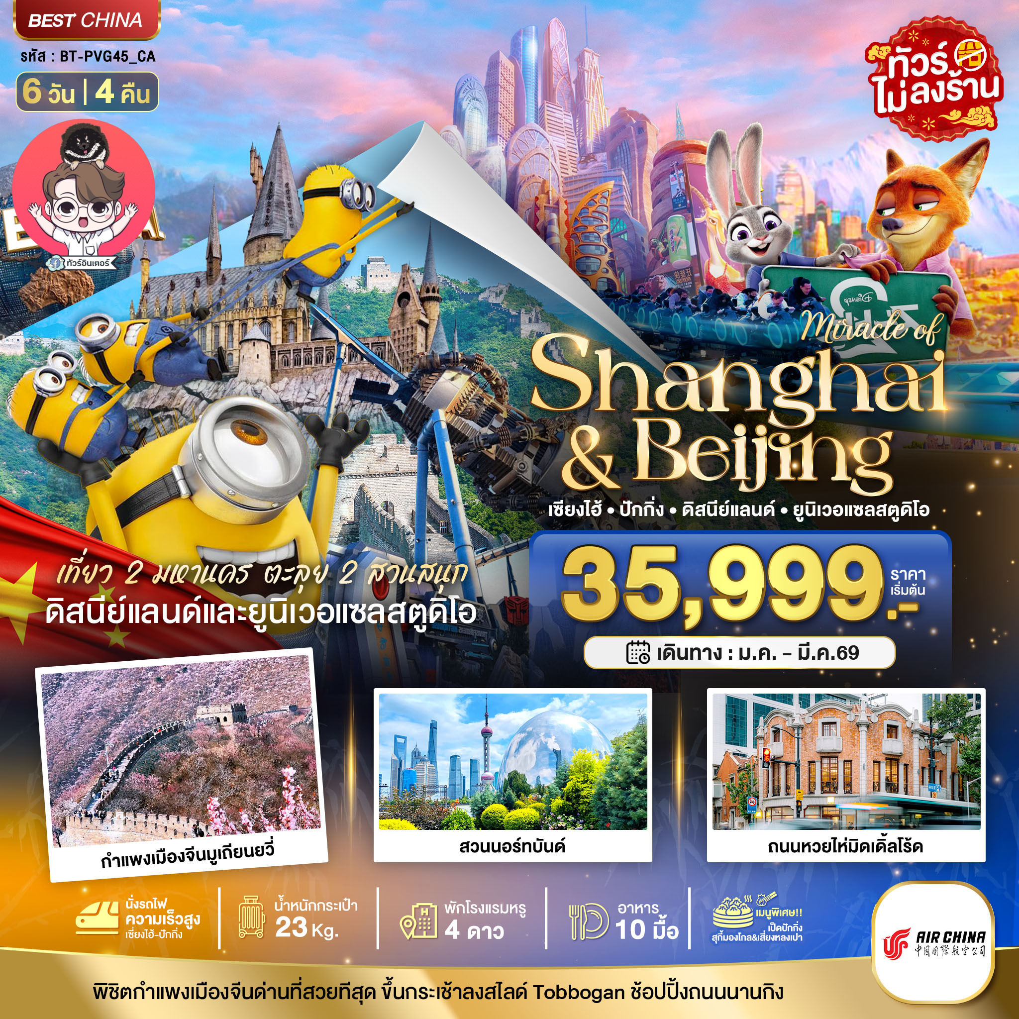 02.30 น. ออกเดินทางสู่ เมืองเซี่ยงไฮ้ ประเทศจีน โดยเที่ยวบินที่ CA806 (บริการอาหารบนเครื่อง)
