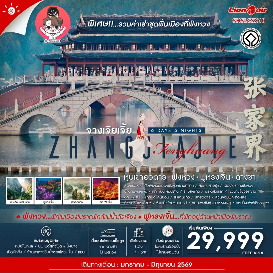 กรุงเทพฯ (สนามบินดอนเมือง) - ฉางซา - นั่งรถไฟความเร็วสูง - ฟ่งหวง - ล่องเรือตามลำน้ำถัวเจียง ชมเมืองโบราณฟ่งหวงยามค่ำคืน